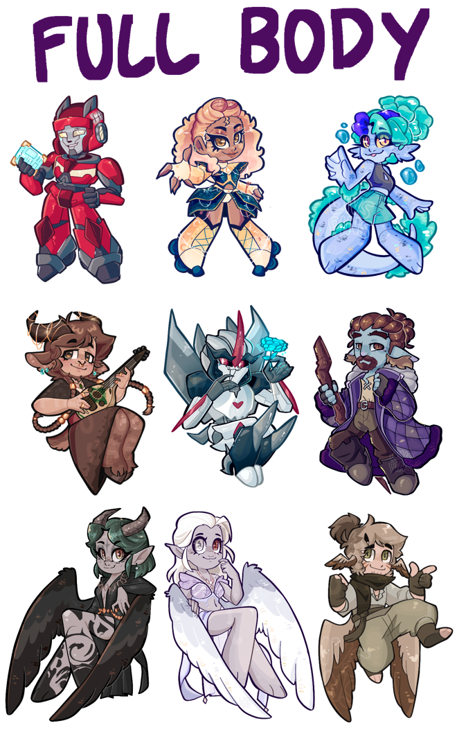 I offer a range of options that could include character sheets, icons, art requests and more.